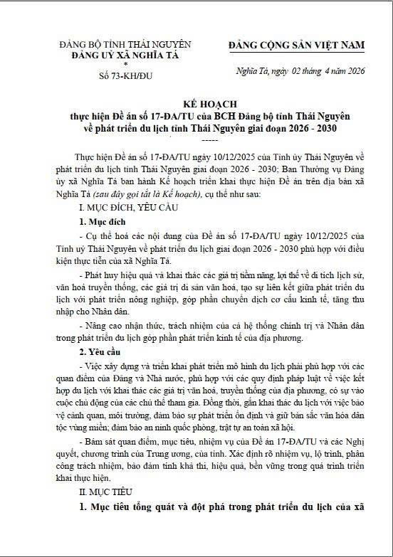 TRANG THÔNG TIN ĐIỆN TỬ XÃ NGHĨA TÁ TỈNH THÁI NGUYÊN Cơ quan chủ quản: UBND XÃ NGHĨA TÁ Địa chỉ: Thôn Trung Tâm, xã Nghĩa Tá, tỉnh Thái Nguyên Điện thoại: 0396745990 Email: Nghiata@thainguyen.gov.vn Chịu trách nhiệm nội dung: Hoàng Xuân Trường, Phó chủ tịch UBND xã, Trưởng Ban biên tập Trang thông tin điện tử. Ghi rõ nguồn khi phát hành lại thông tin từ website này./.